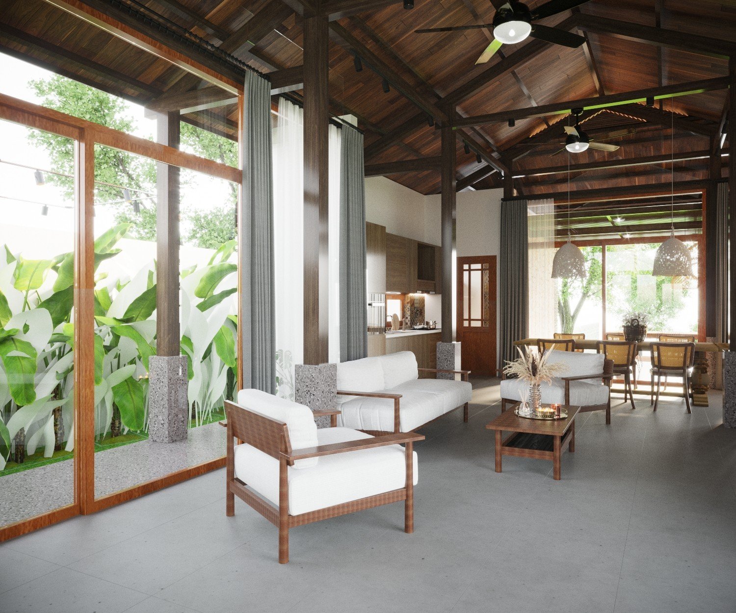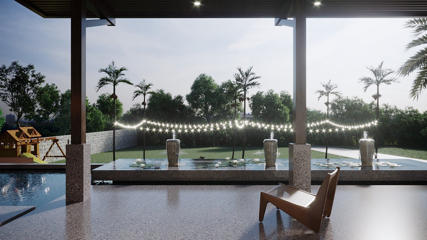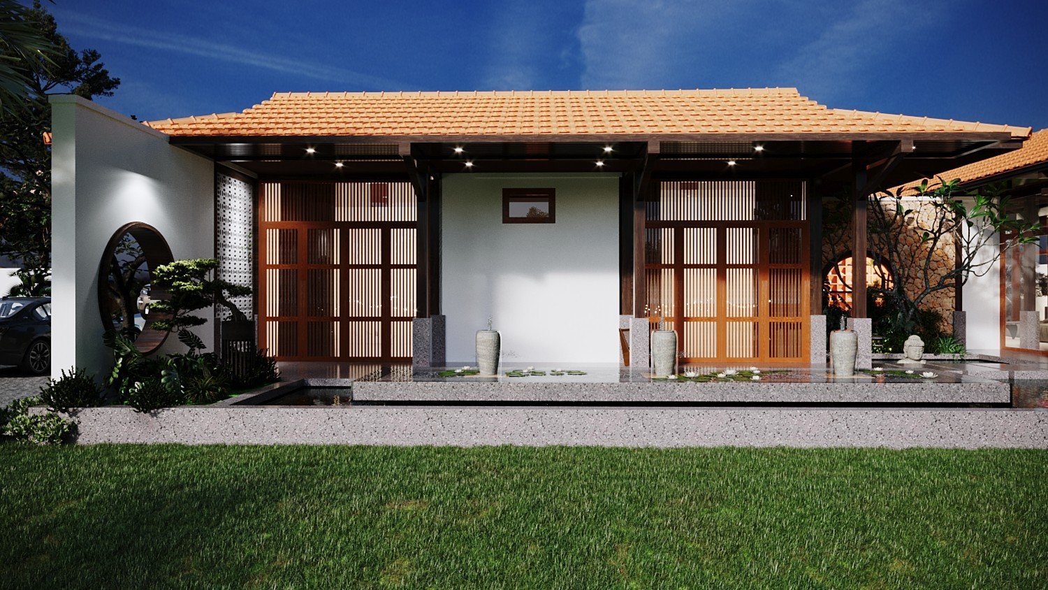 Một công trình nhà vườn đã được Kiến Trúc S hoàn thiện trọn gói, từ ý tưởng thiết kế 3D, lập phương án kiến trúc chi tiết, đến thi công và hoàn thiện nội thất một cách chuyên nghiệp. Ngôi nhà nổi bật với không gian xanh, sân vườn rộng rãi, tiểu cảnh hài hòa và cây xanh được bố trí tinh tế, mang lại cảm giác trong lành, mát mẻ và thư giãn tuyệt đối. Ánh sáng tự nhiên và gió trời được tối ưu hóa, giúp không gian sống luôn thoáng đãng và gần gũi với thiên nhiên.