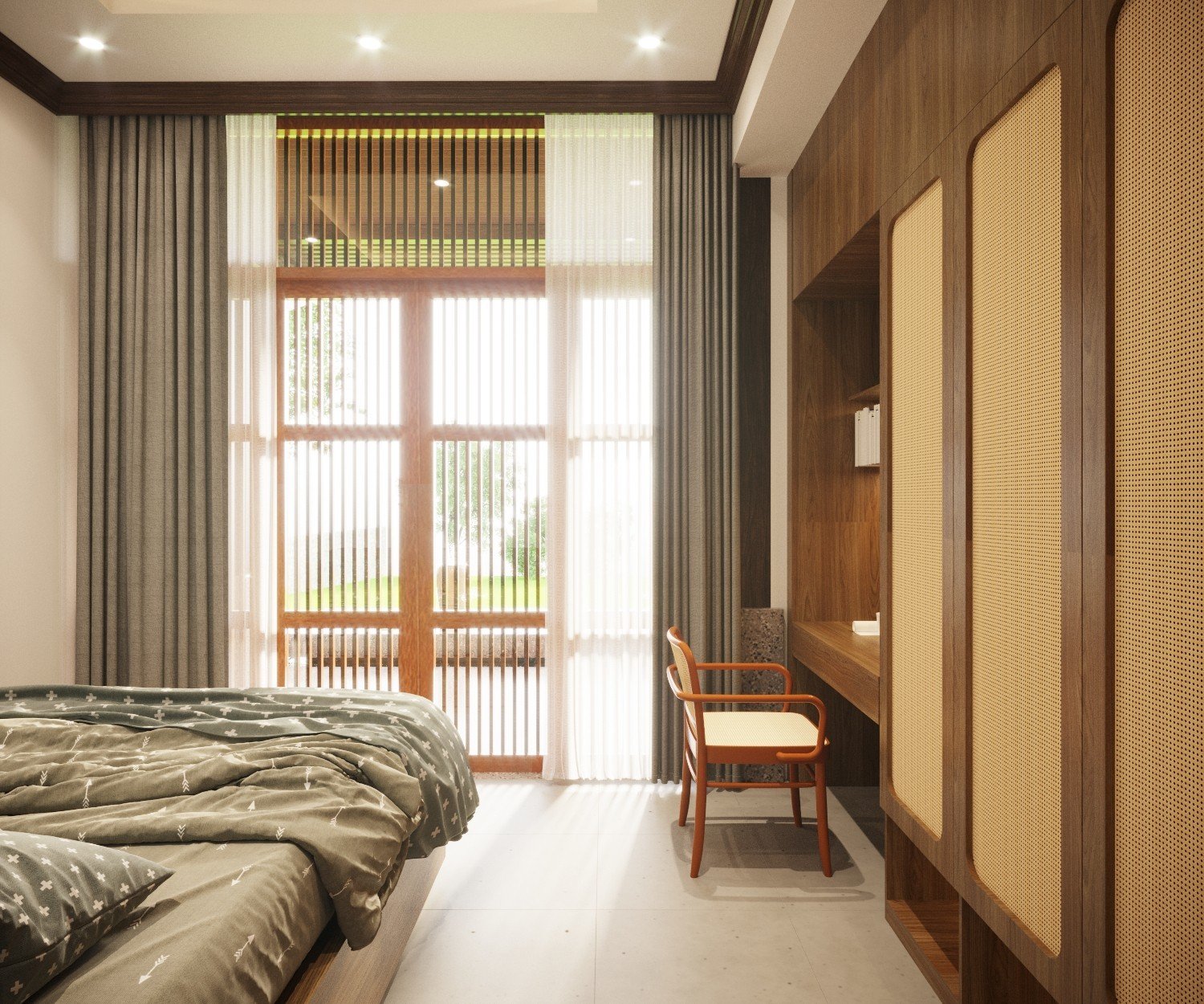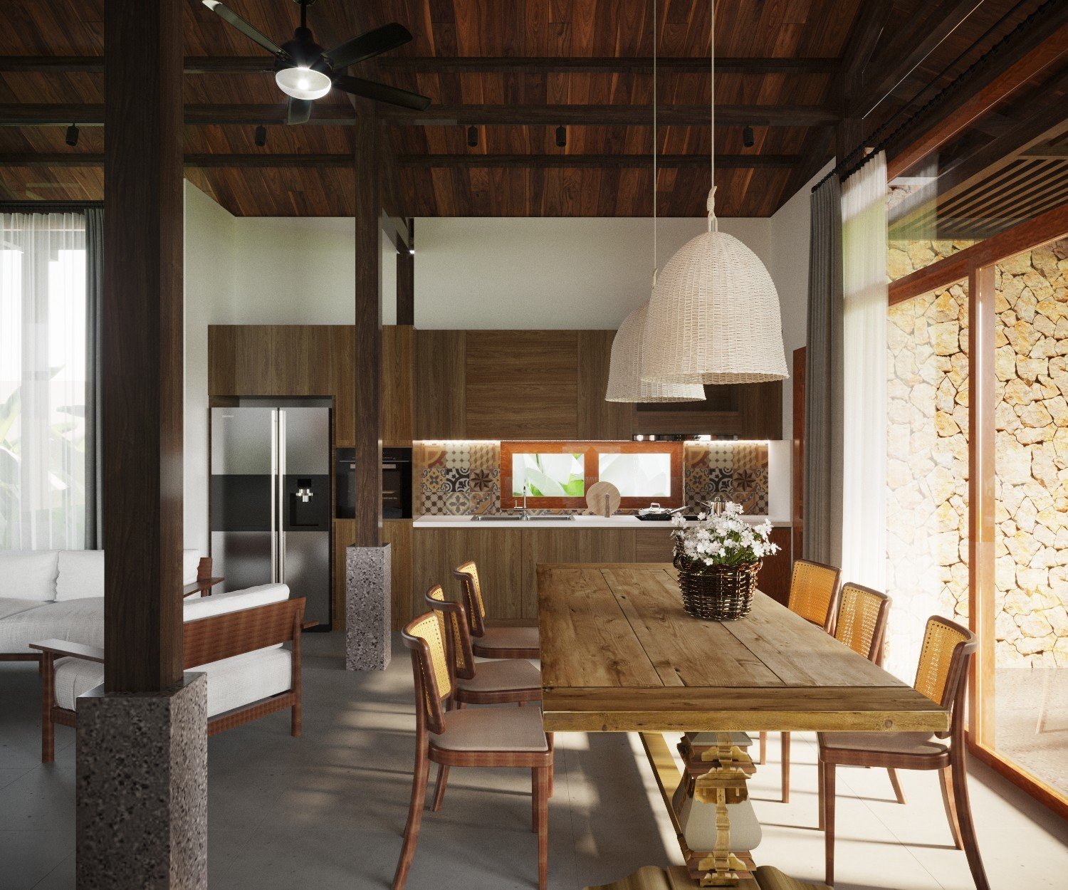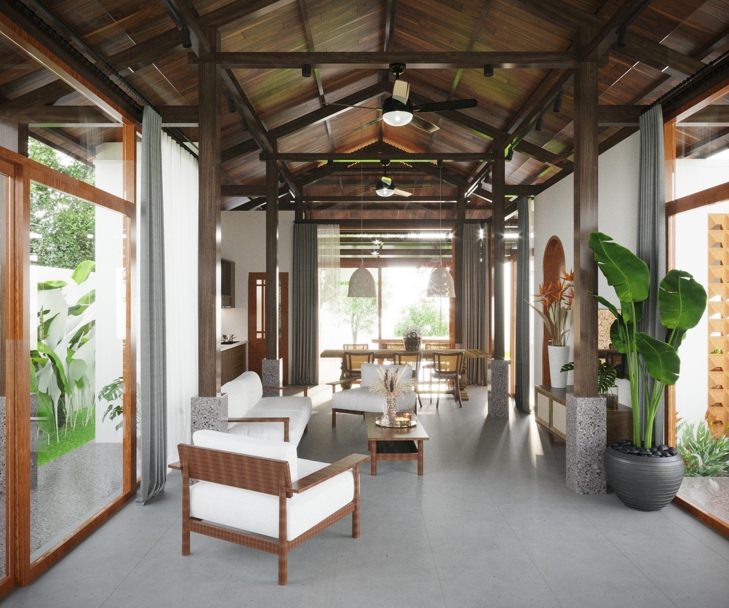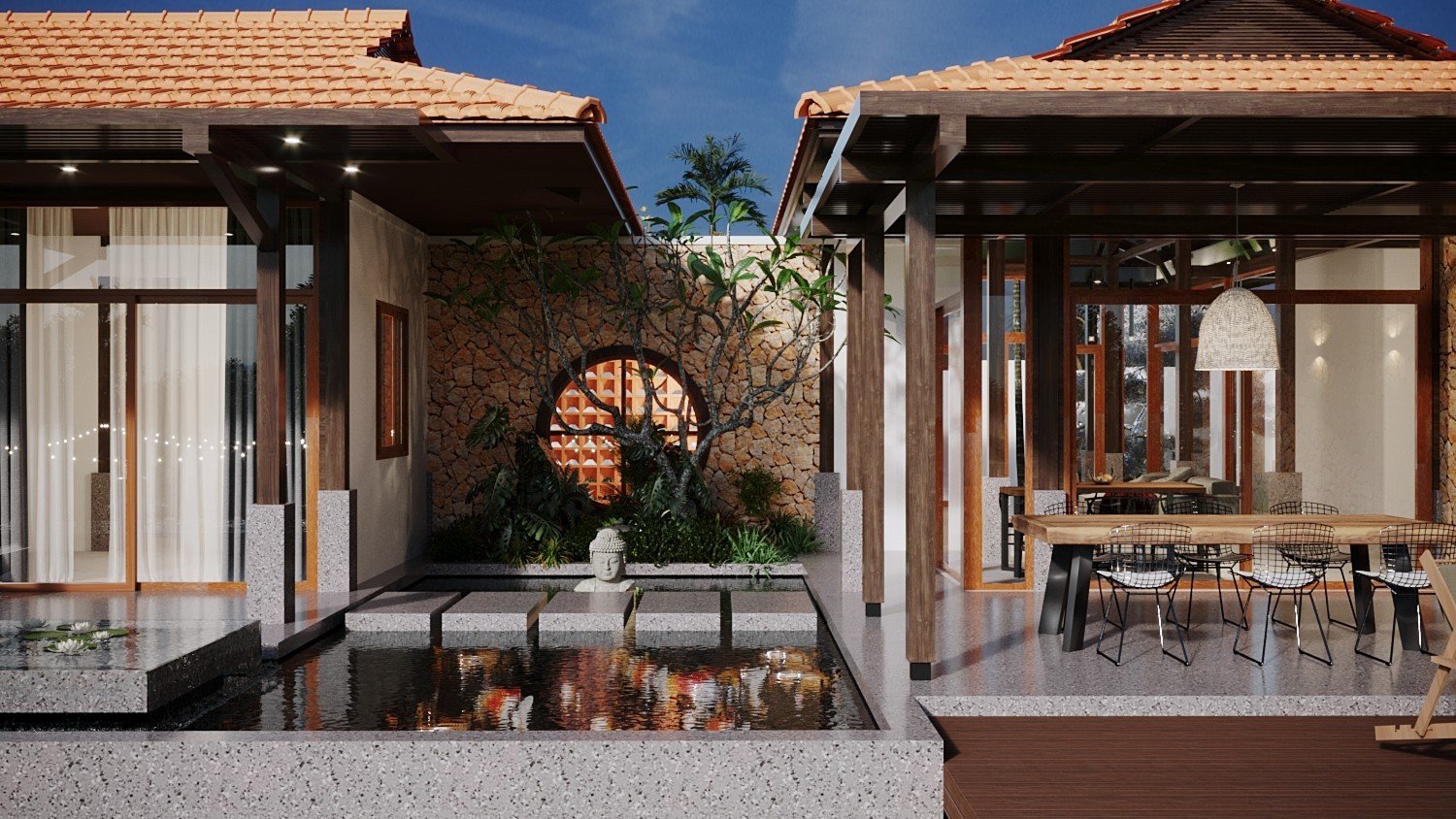 Một công trình nhà vườn đã được Kiến Trúc S hoàn thiện trọn gói, từ ý tưởng thiết kế 3D, lập phương án kiến trúc chi tiết, đến thi công và hoàn thiện nội thất một cách chuyên nghiệp. Ngôi nhà nổi bật với không gian xanh, sân vườn rộng rãi, tiểu cảnh hài hòa và cây xanh được bố trí tinh tế, mang lại cảm giác trong lành, mát mẻ và thư giãn tuyệt đối. Ánh sáng tự nhiên và gió trời được tối ưu hóa, giúp không gian sống luôn thoáng đãng và gần gũi với thiên nhiên.
